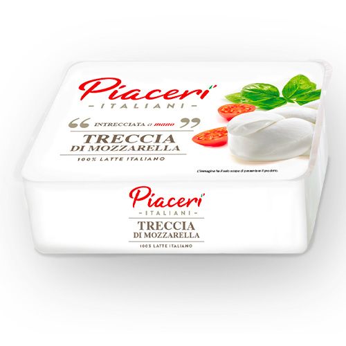 You can savour our Piaceri Italiani Mozzarella both as Fior di Latte, distinguished by its soft, firm consistency, pure white colour, and authentic, classic fiordilatte flavour, and as Braided Mozzarella, with its characteristic braided form, which allows you to fully appreciate the compact, elastic nature of the stretched curd, with a pure white colour and a traditional milky flavour.